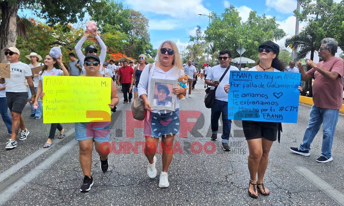 En Cancún, familias y colectivos se unieron a la marcha nacional #QueremosMedicina para exigir medicamentos oncológicos y denunciar el desabasto en el IMSS.