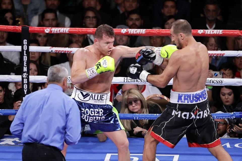 "Canelo" fue paciente, y cuando el pleito estaba muy parejo por fin encontró el momento para noquear al rival.