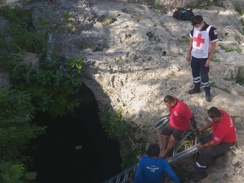 Cuerpos de rescate y protección civil decidieron suspender, la búsqueda del sujeto que en estado de ebriedad se metió a nadar en un cenote urbano de Cancún