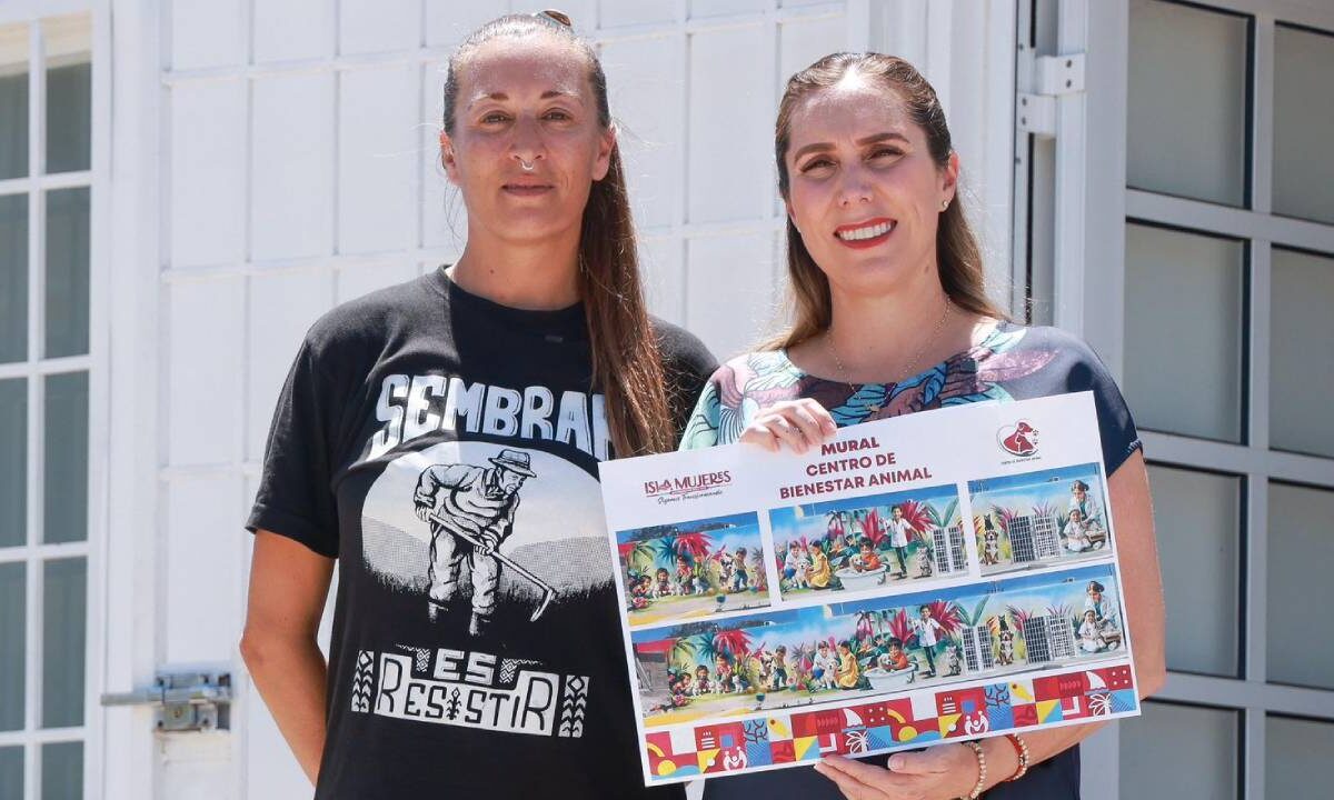 La presidenta municipal Atenea Gómez Ricalde anunció a la artista que engalanará la fachada del Centro de Bienestar Animal de Isla Mujeres.