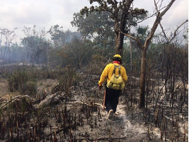 El incendio está en el área de Protección de Flora y Fauna Uaymil y la Reserva de la Biosfera Sian KaÔÇÖan, municipio de Bacalar