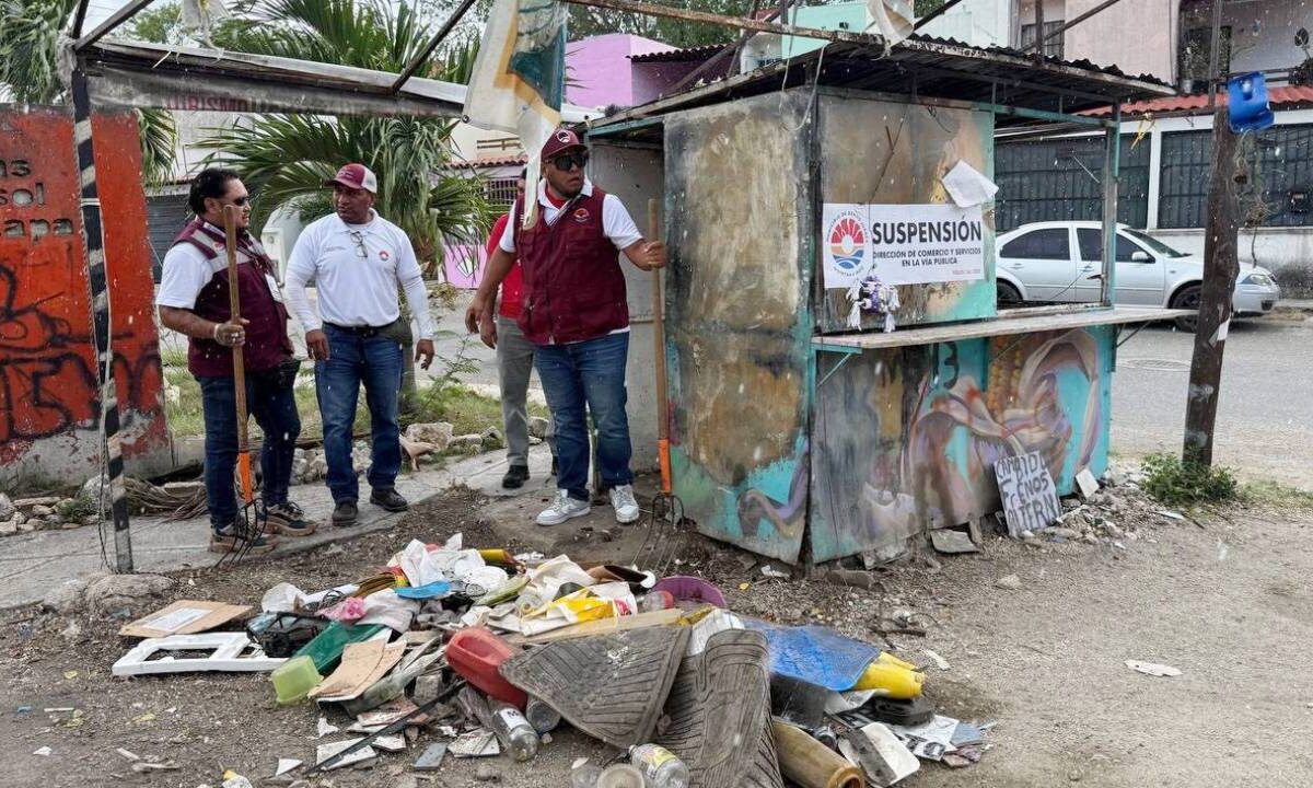 Recuperan espacio público en la Supermanzana 200 de Cancún con el retiro de varios puestos irregulares, tras una denuncia ciudadana.