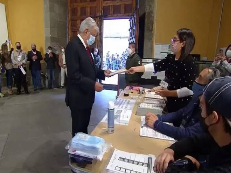 Acompañado de su esposa Beatriz Gutiérrez M├╝ller, el mandatario emitió su voto en la casilla ubicada a un costado de Palacio Nacional