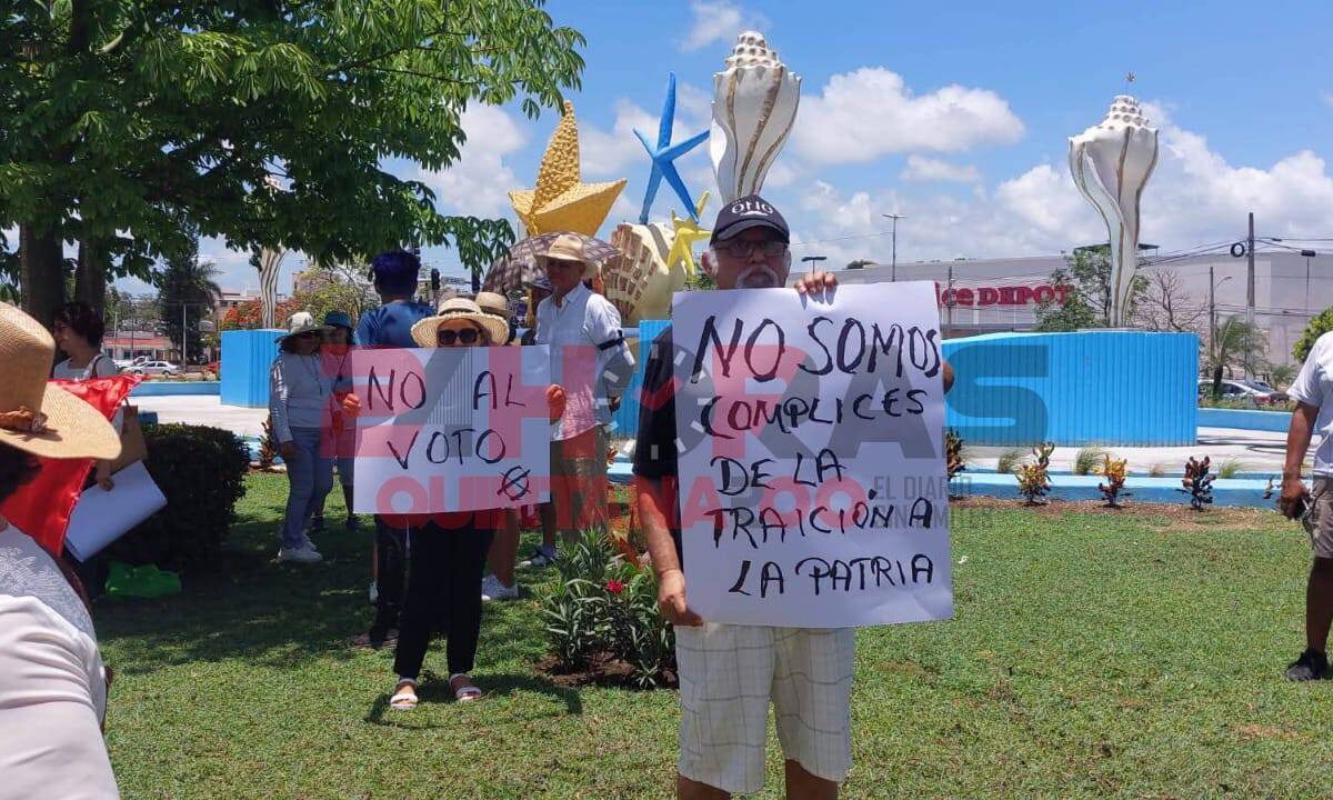 Este 1 de junio, más de una veintena de ciudadanos se manifestaron en la glorieta del Ceviche en contra del proceso electoral.