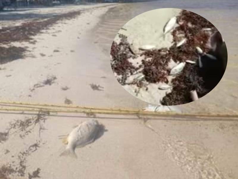 En redes sociales, habitantes de Mahahual dieron a conocer la presencia de algunos peces muertos en la orilla de la playa