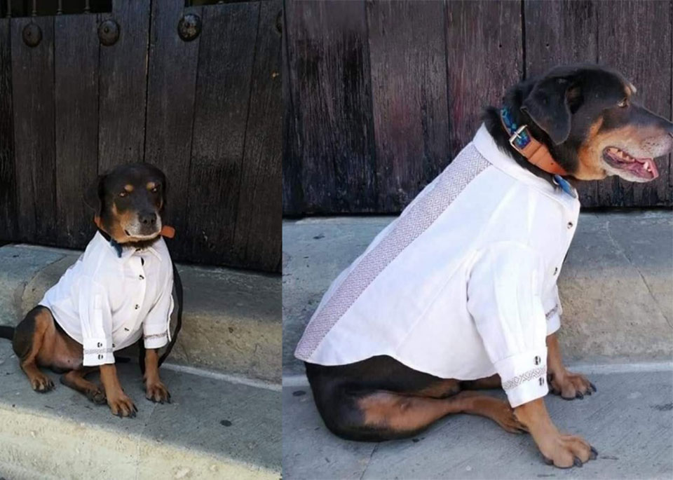Mazapán, el perro calendero reapareció nuevamente por las calles de la capital oaxaqueña, pero ahora portando una guayabera elaborada en el Pueblo Mágico de Mitla.