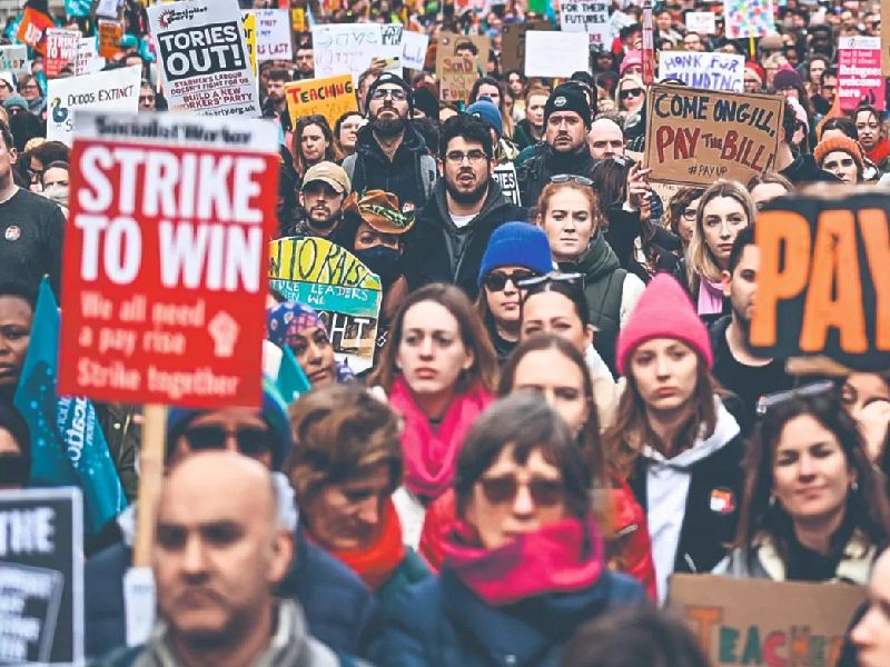 Reino Unido vivió su mayor jornada de huelga en once años con paros en numerosos sectores, unidos por la reivindicación de mejores salarios frente a una inflación del 10.5%
