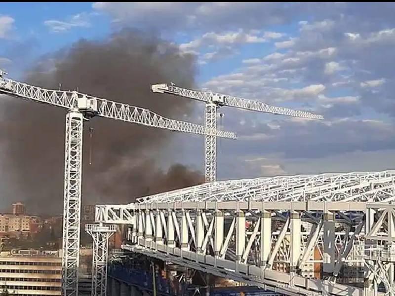 Un incendio se registró en las obras del Estadio Santiago Bernabéu, en Madrid, España.