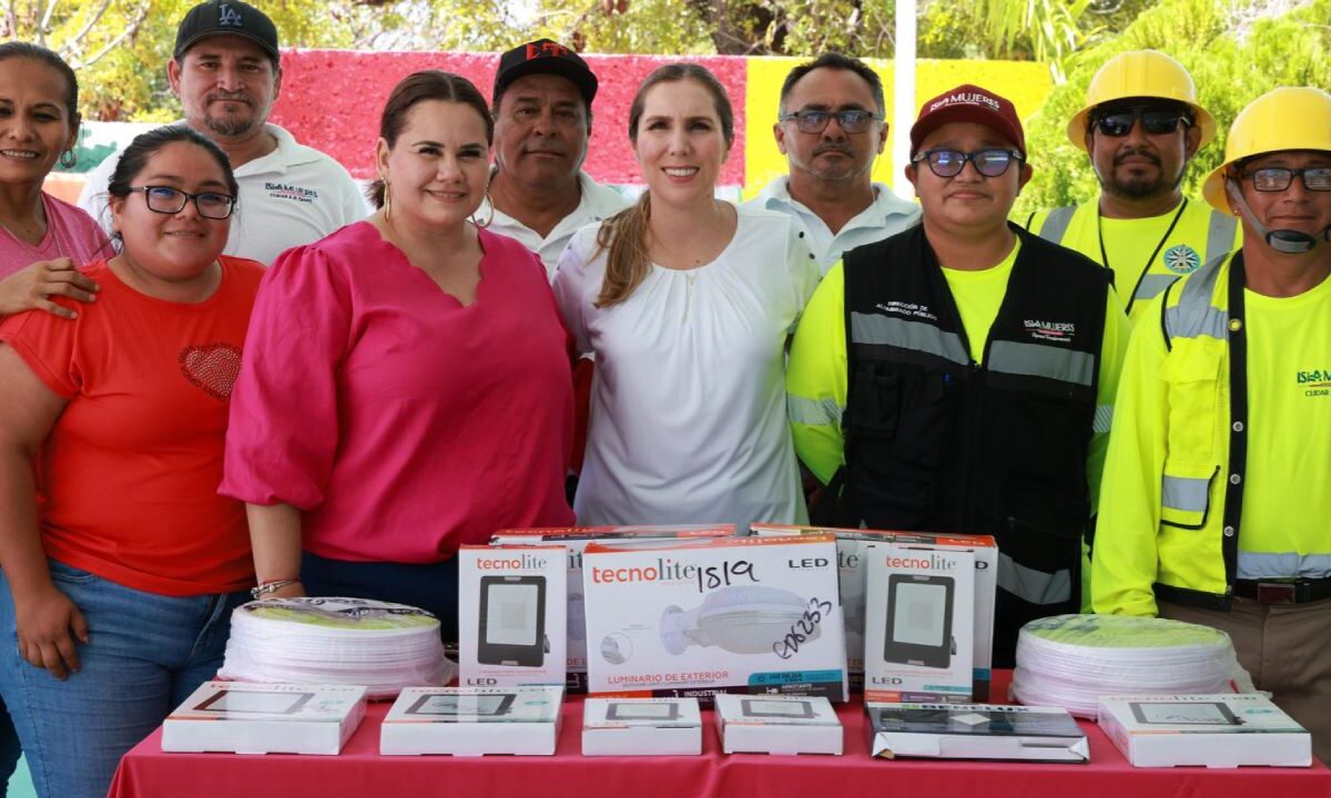 La presidenta municipal de Isla Mujeres acudió al jardín de niños para supervisar la instalación de nuevas luminarias.