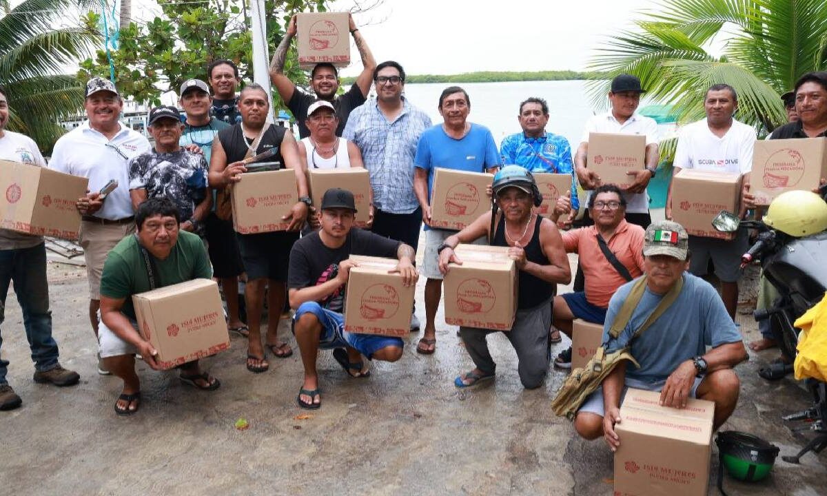 Atenea Gómez entregó paquetes alimentarios a cooperativas pesqueras de Isla Mujeres, reforzando el apoyo directo al sector.