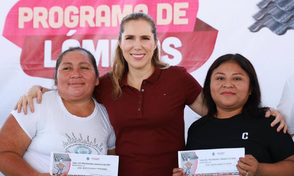 La presidenta de Isla Mujeres, Atenea Gómez Ricalde, entregó láminas a familias para reforzar sus viviendas ante la temporada de huracanes.