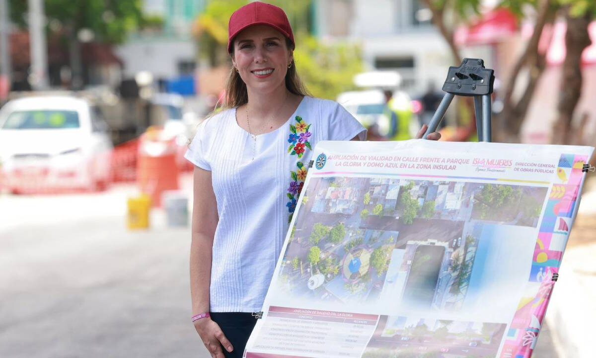 La presidenta municipal Atenea Gómez Ricalde supervisó los avances de la obra de ampliación vial en la calle Candelero,
