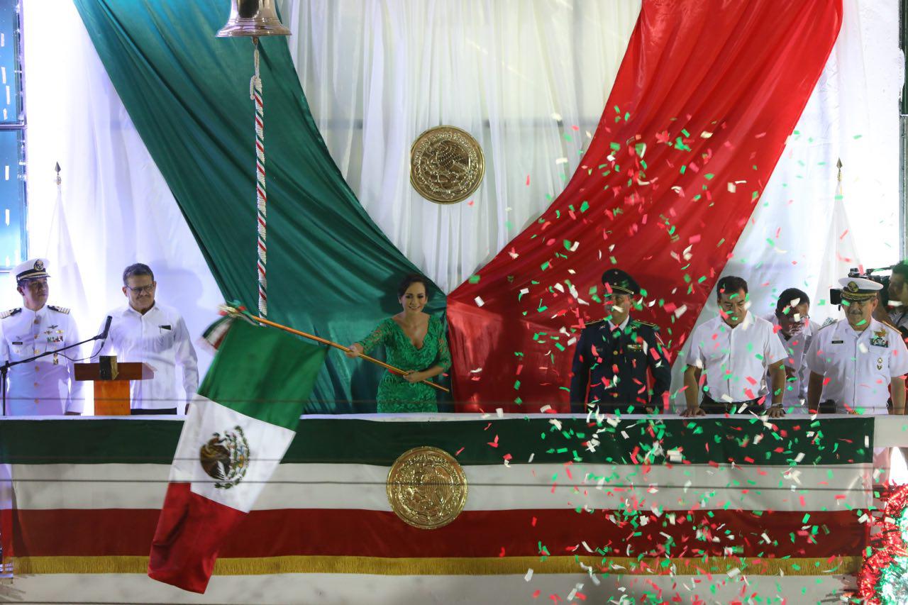 Encabeza Laura Fernández el tradicional Grito de Independencia en Puerto Morelos
