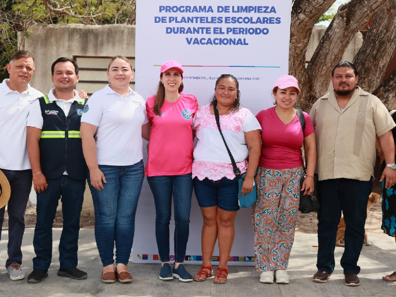 La presidenta municipal de Isla Mujeres, Atenea Gómez Ricalde, inauguró el programa de Limpieza de Planteles Escolares que se llevará a cabo durante el periodo vacacional de Semana Santa