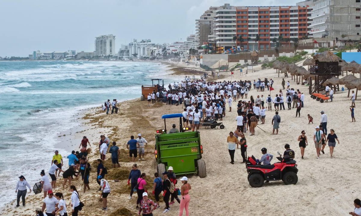 Más de 600 personas se unieron en Cancún para limpiar 12 km de playas en la primera jornada simultánea contra el sargazo.