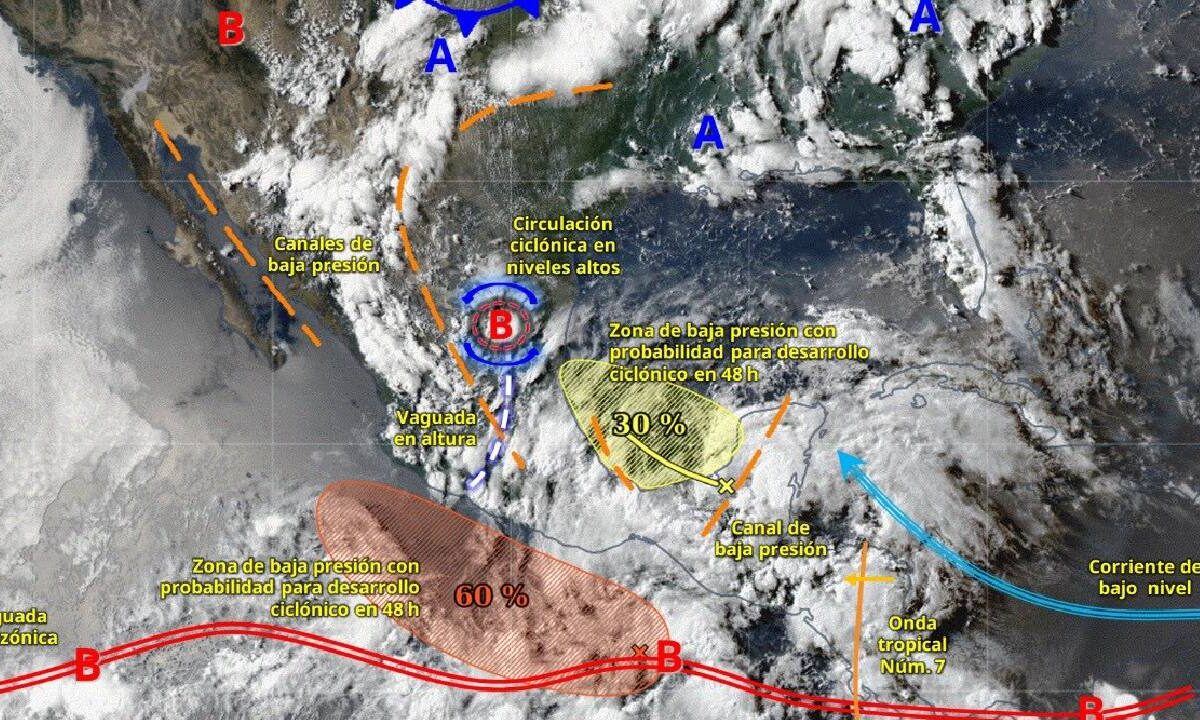 La Coordinación Estatal de Protección Civil alertó hoy sobre lluvias fuertes a muy fuertes en Quintana Roo debido a una zona de baja presión.