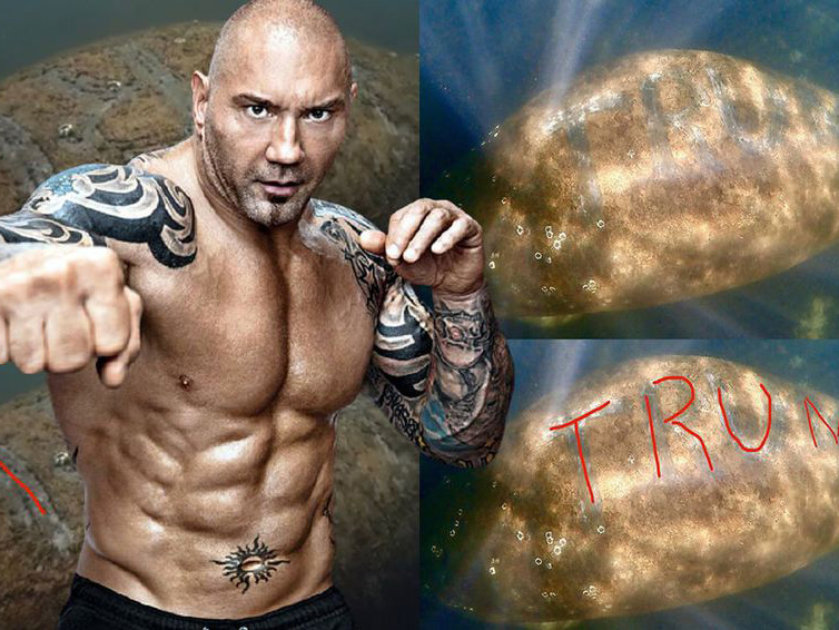 En EU, una persona decidió que la mejor manera de mostrar su apoyo a Donald Trump era lacerando la espalda de un manatí