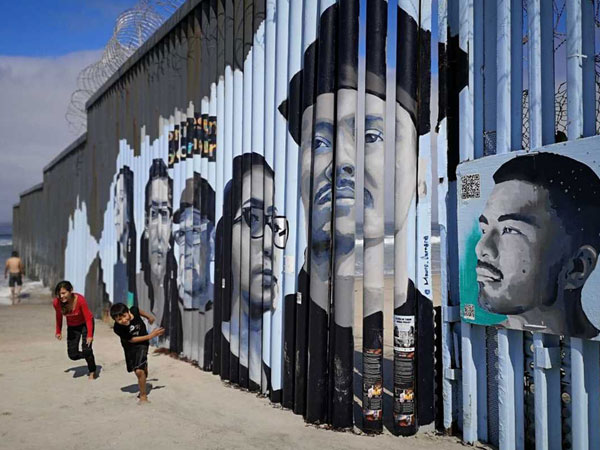 Pintan rostro de migrantes en muro fronterizo de Tijuana