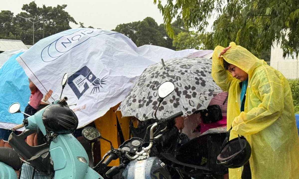 Pese a la fuerte lluvia, cientos de personas en Chetumal hacen fila para inscribirse al programa Viviendas para el Bienestar.
