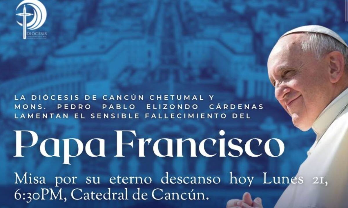 La Diócesis de Cancún-Chetumal invita esta tarde a la celebración eucarística por el eterno descanso de Su Santidad el Papa Francisco,