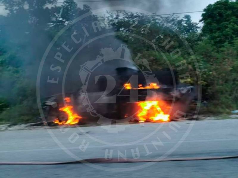 Se incendia pipa con residuos sanitarios en la carretera Playa del Carmen-Tulum