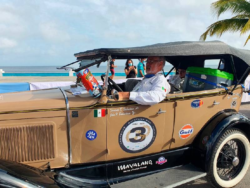 Un Ford Cabriolet 1934, al frente de la categoría A del Rally Maya México