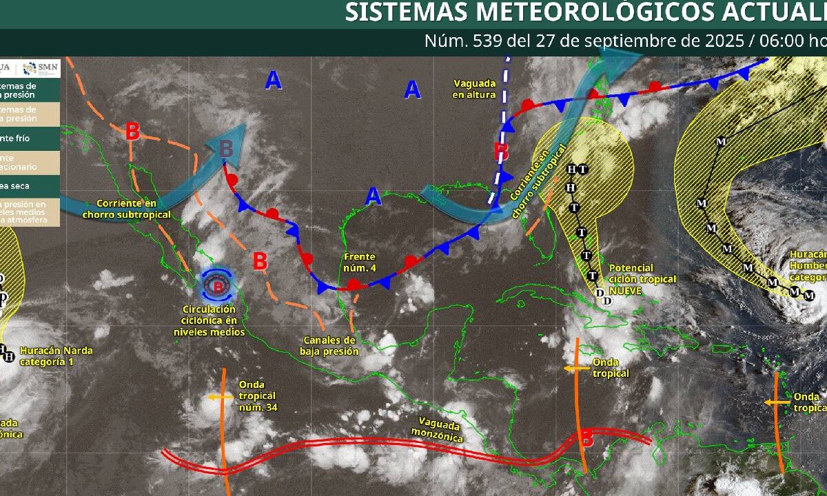 Clima en Quintana Roo hoy 27 de septiembre: lluvias fuertes en varias regiones, calor extremo, con oleaje elevado por el huracán Narda.