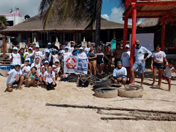 Retiran cerca de 250 kilos de residuos sólidos en jornada de limpieza de pastos marinos en Puerto Morelos