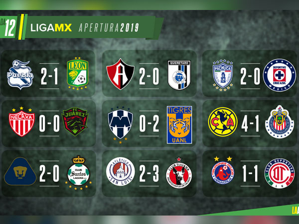 Resultados y tabla general tras la jornada 12 de la Liga MX