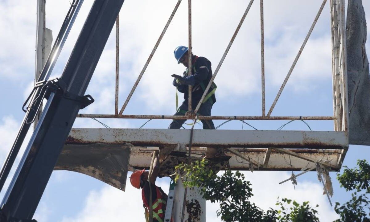 Para prevenir riesgos durante la temporada de huracanes, la Secretaría de Desarrollo Urbano retira espectaculares en varias zonas de Cancún.
