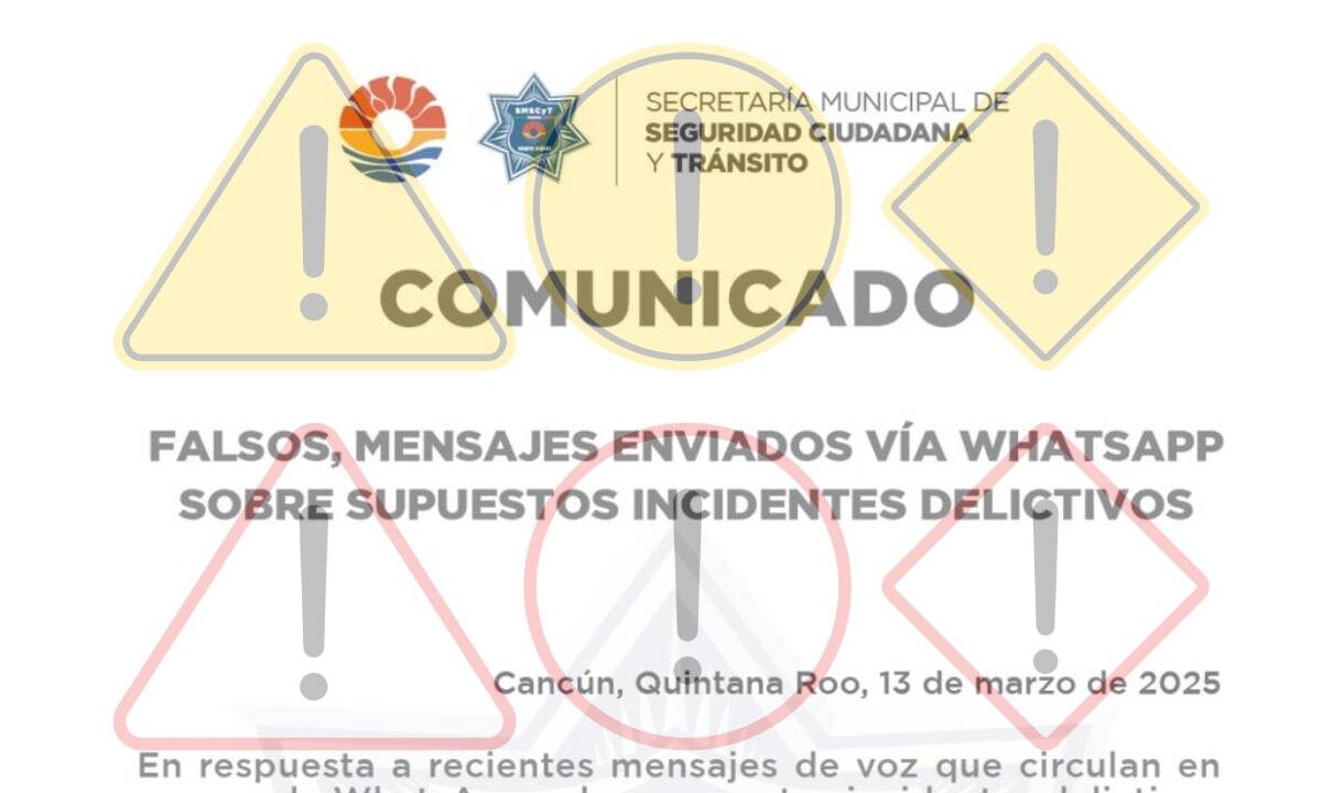 La SMSCyT ha detectado la circulación de mensajes de WhatsApp que alertan sobre supuestos "levantones" en Cancún.