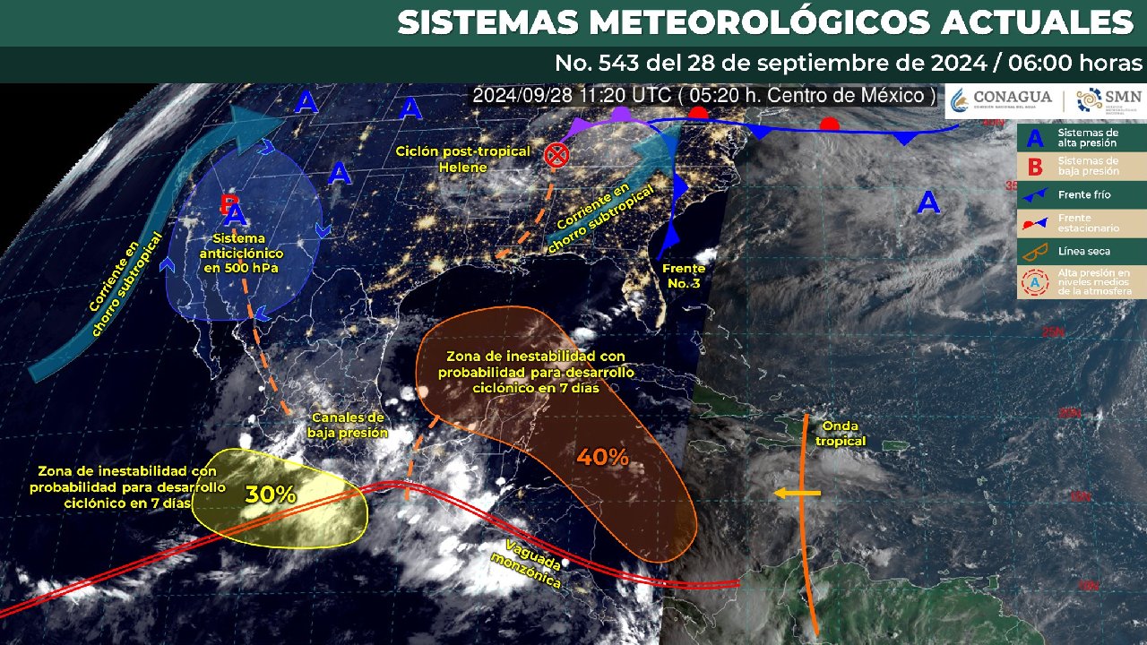 El SMN informó que para hoy, lunes 30 de septiembre, se pronostican lluvias en Quintana Roo, y que se vigilan zonas de baja presión.