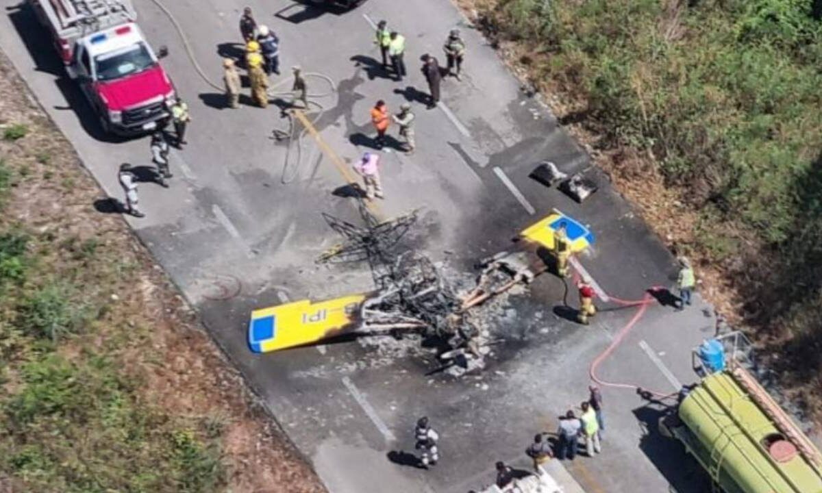 Avioneta aterriza de emergencia en la carretera Mérida-Cancún y se incendia