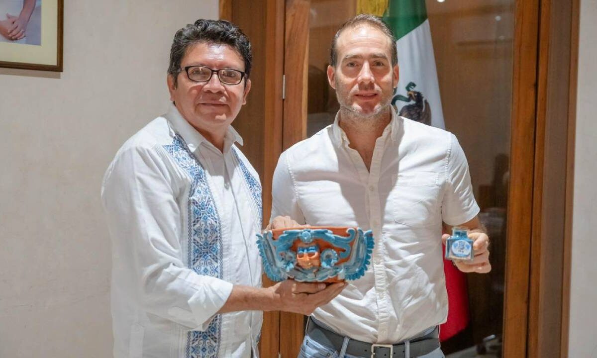El escultor Luis May y el alcalde de Tulum, Diego Castañón, lanzan talleres para rescatar el azul maya y técnicas ancestrales de cerámica.