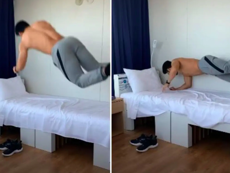 VIDEO. Prueba atleta mexicano camas antisexo con 'salto de tigre'