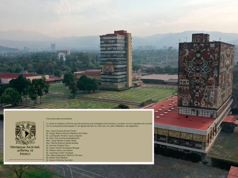 La junta de Gobierno de la UNAM reveló la lista de los 17 aspirantes para convertirse en el nuevo rector de la institución educativa. En comunicado, la Universidad Nacional Autónoma de México (UNAM) compartió los nombres de las personas que entregaron sus documentos y cumplen con los requisitos de la convocatoria para aspirar a la Rectoría. Los aspirantes son: […]