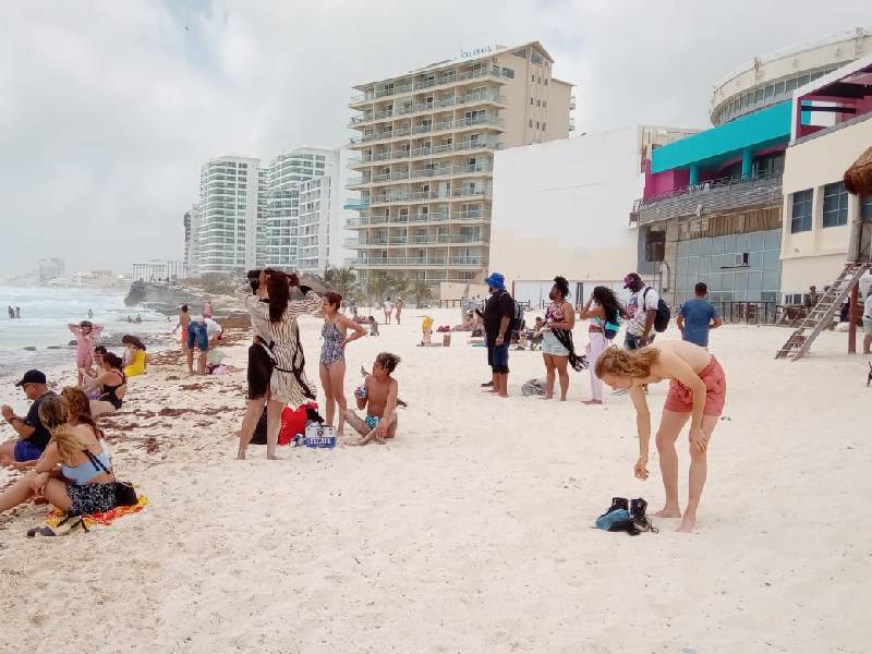 Una gran cantidad de paseantes, principalmente familias, aprovecharon hasta el último minuto de permanencia permitida en las playas de Cancún