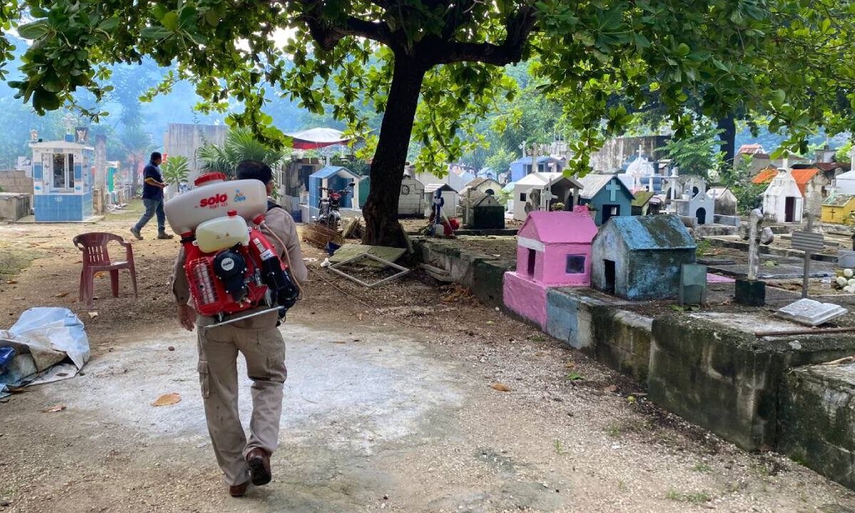 La Jurisdicción Sanitaria 2 refuerza la nebulización y control del mosquito Aedes aegypti en panteones de Cancún antes del Día de Muertos.