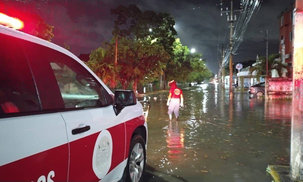 Bomberos atendieron encharcamientos y árboles caídos tras lluvias en Cancún
