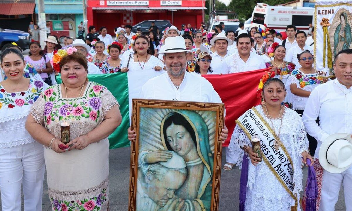 Trabajadores del Ayuntamiento de Puerto Morelos iniciaron las fiestas patronales con procesión, misa y vaquería en honor a la Virgen de Guadalupe.