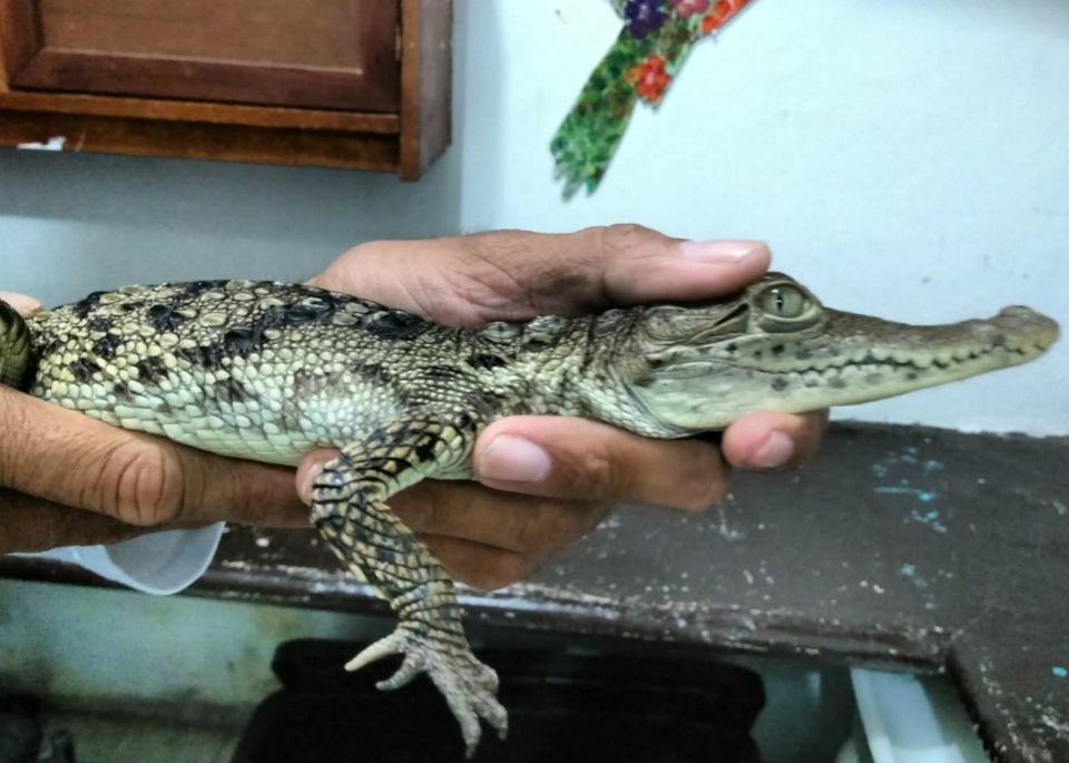 Personal del Centro de Conservación y Educación Ambiental (CEA), recibió un cocodrilo juvenil de la especie Crocodylus moreletii, introducido de manera ilegal desde Río Lagartos, Yucatán.